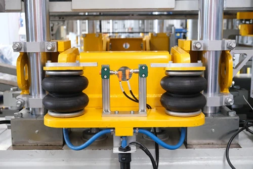 ● Пневматски уред за стегање калапи: Се состои од рамка за поддршка на мувла и пневматски Пневматски стегачи од двете страни. За време на предвибрационите и главните циклуси на вибрации, тоа помага затегнете го и прицврстете го калапот, намалувајќи ги вибрациите и постигнувајќи го најдобриот ефект на вибрации, додека продолжување на животниот век на мувлата.