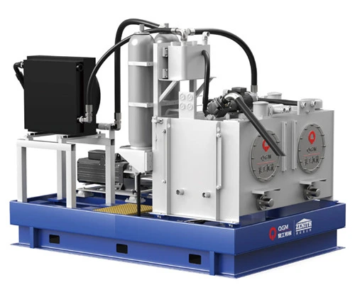 Главата под притисок, рамката на мувлата, автомобилот со агрегат и автомобилот од ткаенина се контролирани со Главата за манипулација, рамката на мувлата, кутијата за напојување за основната мешавина и мешањето лице се контролирани со пропорционални вентили за насочување со повратни информации за јадрото на вентилот, кои нудат кратки времиња на одговор. Системот за контрола на затворена јамка (линеар за поместување / енкодер -PLC- -пропорционален насочен вентил-цилиндар за масло) обезбедува прецизна контрола, со брз и стабилен цилиндар за масло движење. Хидрауличната станица користи клипна пумпа со променливо поместување, која запира пумпање масло под притисок кога хидрауличниот систем ќе го достигне зададениот притисок, растоварувајќи го пумпа и намалување на потрошувачката на енергија. Хидрауличната станица е опремена со акумулатор за помошно снабдување со масло, овозможувајќи повеќекратни дејства да се случуваат истовремено, со стабилен притисок на хидрауличниот систем. Системот вклучува и сензор за притисок, кој дисплеи на оперативниот панел за лесно следење, како и сензор за температура, ладилник и грејач за ефикасно контролирање на температурата на маслото и одржување на добро хидраулично масло перформанси.