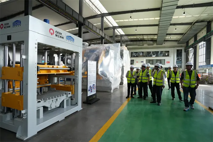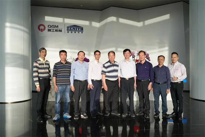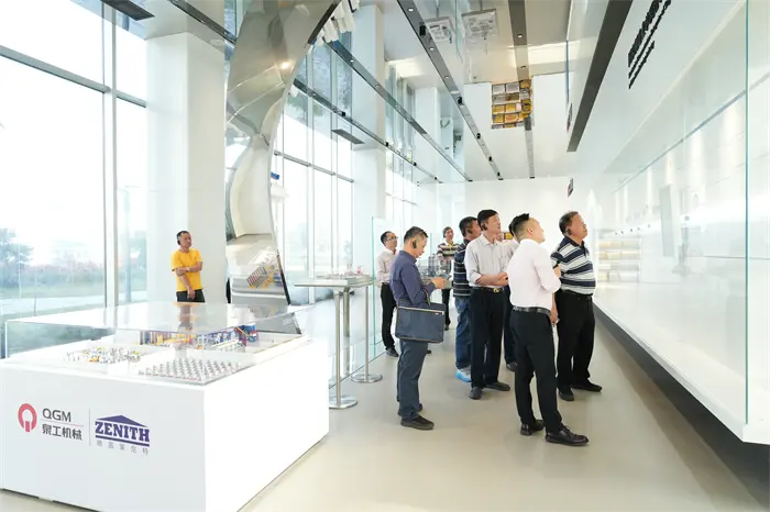 Потоа, гостите се преселија во просторот за прикажување примероци од тули и гледаа различни висококвалитетни пропустливи тули, тротоарски тули, блокови и други производи произведени од опремата QGM и изразија голем интерес за технолошките достигнувања на компанијата „рециклирање на цврст отпад“. Во областа за прикажување на опремата за производство на тули, претседателот Лин Боќиан и неговата партија внимателно ја прегледаа основната опрема како што се целосно автоматската машина за формирање блокови и интелигентната производствена линија независно развиена од QGM, и на лице место ги разменија техничките предности и изгледите за примена на пазарот. Претседавачот Лин Бо целосно го потврди извонредниот придонес на QGM во областа на производство на опрема од високата класа и зелени градежни материјали и нагласи: „QGM е иновативен модел на приватни претпријатија во Куанжу. Се надеваме дека понатаму ќе ја играме улогата на федерацијата како мост во иднина, промовирајќи го координираниот развој на индустрискиот индустриски синџир и глобалната помош“. Заменик генералниот директор Фу Хуабин одговори дека компанијата ќе продолжи да ги зголемува инвестициите во истражување и развој и да работи со партнери од сите сфери на животот за да истражи нови можности за интегриран развој на интелигентна опрема и зелено производство.