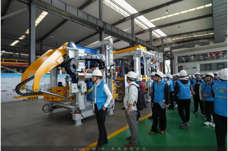 Во работилницата за производство на опрема, посетителите ја обиколија лабораторијата, работилницата за склопување и работилницата за дебагирање, учејќи за целиот процес од анализа на суровини до комплетни комплети автоматска опрема за правење блокови. Во областа на примерокот, беа прикажани различни спецификации и апликации на производи произведени со употреба на машини за производство на тули на компанијата, вклучително и внатрешни и надворешни ѕидни тули, тули за поплочување на отворено и камења за тротоарите, материјали за зачувување на водата и контрола на поплави, еколошка заштита од наклон и потпорни ѕидови од гравитација. Во конференциската сала беше прикажано промотивно видео на компанијата.