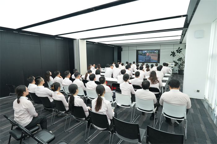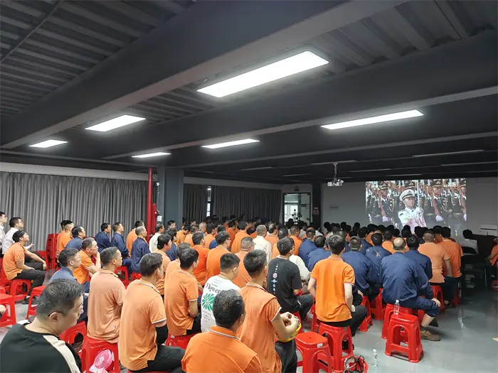 3-ти септември беше ден од големо значење за целиот кинески народ. На овој посебен ден, претседателот на Fujian Quangong Machinery Co., Ltd. Фу Бингхуанг и генералниот директор Фу Ксинјуан ги предводеа сите вработени во конференциската сала на компанијата да ја следат големата воена парада и да бидат сведоци на овој возбудлив историски момент.