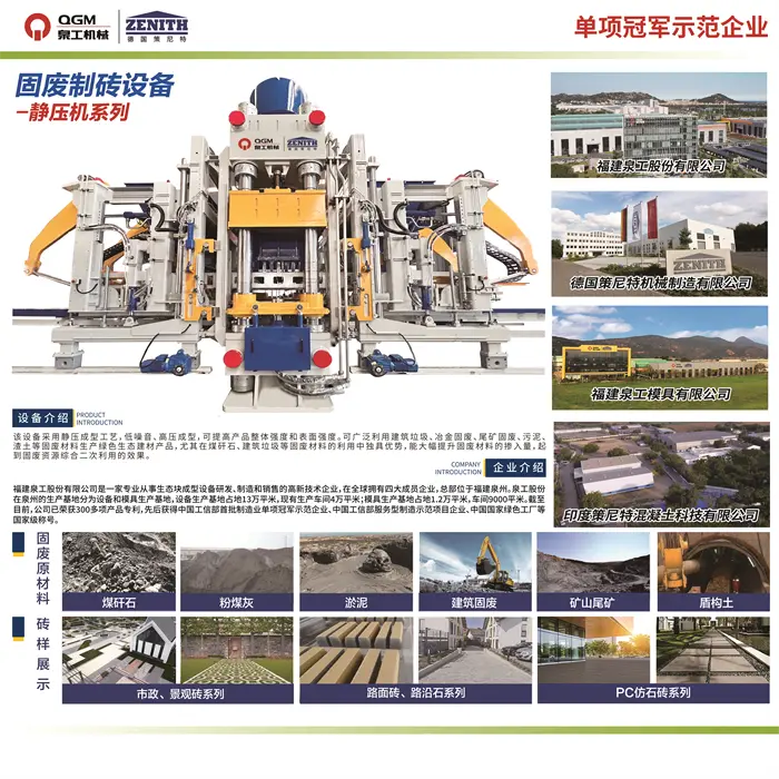 Како репер во машинската индустрија за формирање бетонски блокови, Fujian Quangong Co., Ltd. отсекогаш се придржувала до иновативното истражување и развој и формирала своја основна технологија базирана на интеграција на напредна германска технологија. Со одлични перформанси на производите, високо конкурентни цени и сеопфатен систем за претпродажба, во продажба и постпродажни услуги, производите се извезени во повеќе од 140 земји и региони, освојувајќи широки пофалби на пазарот. Во исто време, Quangong Machinery Co., Ltd активно одговори на националниот повик и водеше и организираше учество во формулирањето на повеќе национални стандарди, индустриски стандарди и групни стандарди, посветени на промовирање на развојот на кинеските машини и опрема кон висококвалитетна интелигенција.