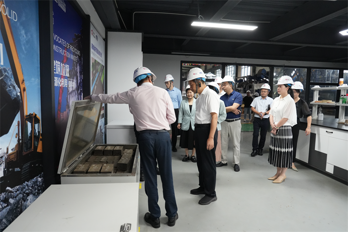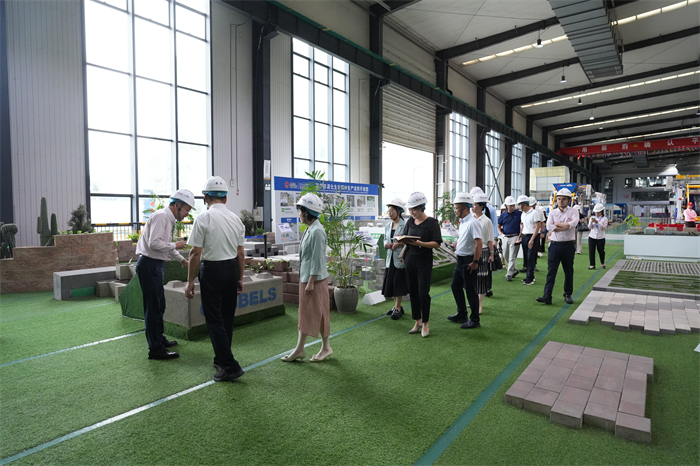 Во просторот за прикажување на примероци од тули, вниманието на гостинската група го привлекоа разни видови пропустливи тули, имитирани камени тули и рециклиран градежни материјали од цврст отпад. Генералниот директор Фу Ксинјуан претстави дека преку технолошко истражување и развој, QGM го трансформирал отпадот како градежен отпад и јаловина во еколошки градежни материјали со висока додадена вредност и годишно троши повеќе од 10 милиони тони цврст отпад. Заменик-градоначалникот Су лично ја провери цврстината и пропустливоста на примероците од тули и ја пофали практиката на QGM за „претворање на отпадот во богатство“ како „модел на кружна економија“. Потоа, групата што ја посетуваше влезе во лабораторијата за правење тули и го набљудуваше експериментот со односот на цврстиот отпаден материјал и процесот на тестирање на готовиот производ. Заменик-градоначалникот Су истакна дека научните и технолошките иновации се основната движечка сила на зелениот развој и ја охрабри QGM „да продолжи да ги зголемува инвестициите во истражување и развој и да ги води стандардите во индустријата“.