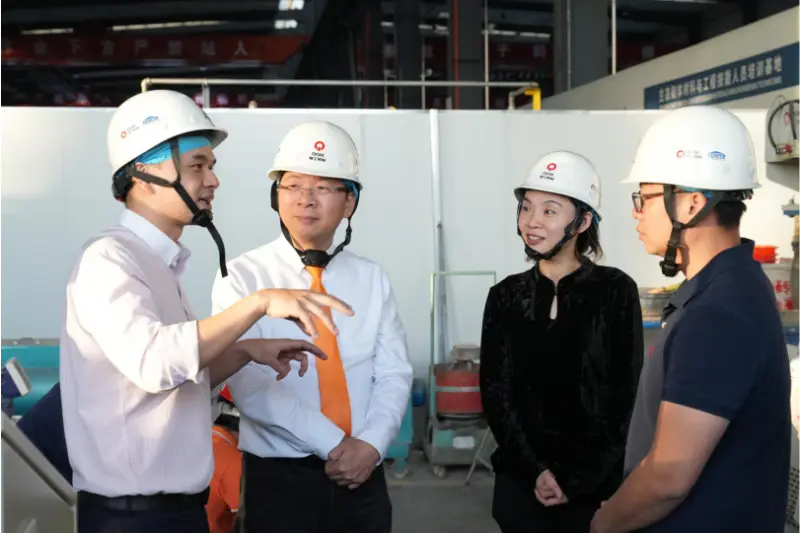 Во придружба на Фу Ксинјуан, генерален директор на Quangong Machinery Co., Ltd., делегацијата го посети изложбениот центар на производи на компанијата, линијата за производство на интелигентна опрема и сервисната платформа за контрола на облакот. Внатре во работилницата, производствената линија за производство на тули за интелигентна јаловина ZN2000-2C работеше ефикасно. Преку „супердинамичен“ серво-вибрациски систем и интелигентен систем за облак услуга, тој ги трансформира планините од јаловина во градежни блокови со висока додадена вредност, постигнувајќи целосен дигитален мониторинг и далечинско работење и одржување.