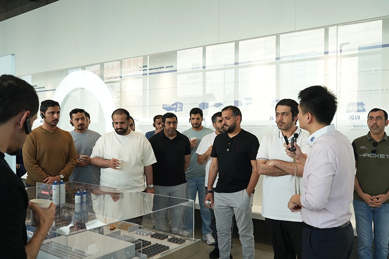 Во контролниот центар на платформата за услуги во облак за интелигентна опрема, делегацијата набљудуваше сценарио за паметно работење и одржување кое покажува како опремата може да се следи од далечина. Како основна иновација на Quanzhou Machinery, оваа платформа интегрира врвни технологии како што се cloud computing, големи податоци и вештачка интелигенција. Може да собира оперативни податоци во реално време од над 1.000 единици на интелигентна опрема ширум светот, овозможувајќи функции за управување со целосниот животен циклус, вклучително и онлајн мониторинг, далечински надградби, предвидување и дијагноза на дефекти и проценка на здравјето на опремата. Членовите на делегацијата се распрашуваа за случаите на апликација на платформата и брзината на одговор на услугата на Блискиот Исток, високо пофалувајќи ги нејзините ефикасни и евтини решенија за работа и одржување за клиентите во странство. Тие веруваа дека оваа технологија совршено ја задоволува побарувачката на инфраструктурниот сектор на ОАЕ за интелигентна и ефикасна опрема.