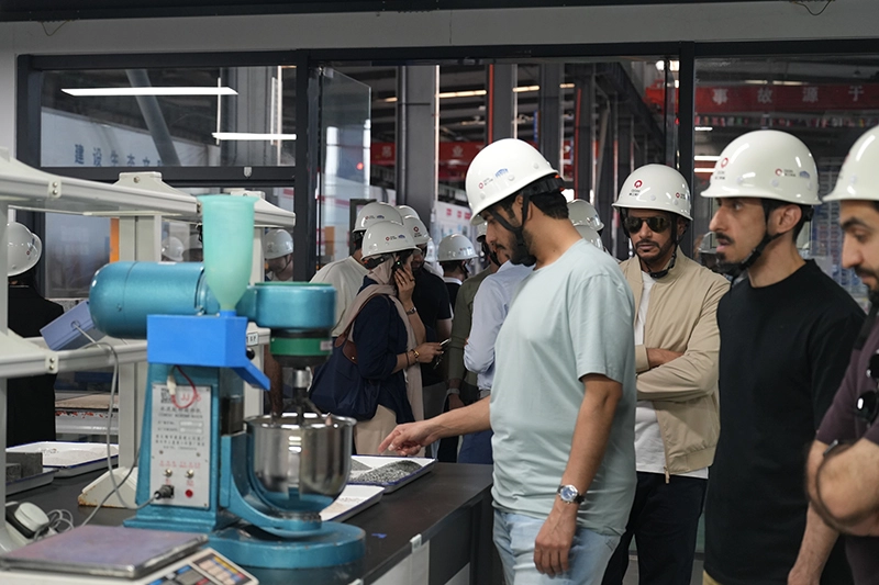 Во лабораторијата за изработка на тули, делегацијата беше сведок на способностите за истражување и развој на Quanzhou Machinery „прилагодени по мерка“. Како база за истражување и развој заеднички основана со универзитети како што се Универзитетот Фужоу и Универзитетот за градежништво и архитектура во Пекинг, таа е опремена со напредна опрема за тестирање на материјали и развој на формула, способна да обезбеди персонализирани решенија за правење тули врз основа на карактеристиките на суровините, климатските услови и проектните барања на регионот на клиентот.