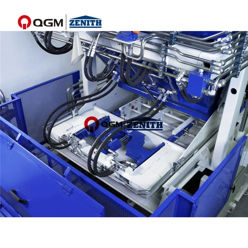 (3) Вибрационен систем со висока ефикасност. Табелата за вибрации е дизајнирана да има четири различни нивоа на производство; Горниот дел од масата за вибрации е дводелен со цел да се постигне рамномерен пренос на моќност и оптимално набивање; Заменлива плоча за абење за заштита на горните делови на масата за вибрации; Табелата за вибрации за прифаќање на два вибратори за постигнување максимална центрифугална сила од 80 kN; за производство на блокови високи 50 cm, рамката на мувлата е опремена со вибратори.
